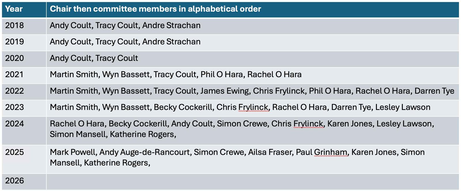 The club could not exist without the hard work of all its committee members and volunteers who step forward each year to help keep the club running.